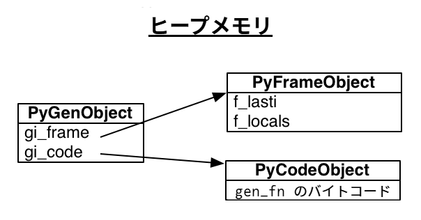 yield fromがこの通りに実装されている。通常インタープリタは命令を実行する前に命令ポインタを 1 だけ進めるものの、yield fromの実行後には命令ポインタを 1 だけ戻し、同じyield fromがもう一度実行されるようにする。yield fromしたジェネレータから値がyieldされた場合は、その値を自身がyieldした値として呼び出し側に返す。ジェネレータがStopIteration例外を送出したときに初めて、インタープリタは命令ポインタを 1 だけ進めて次の命令に進む。 ↩︎ -
