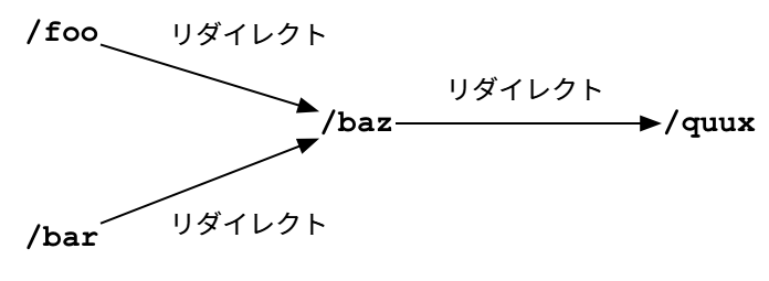 上図のような状態でクローラが /foo をフェッチすると、/foo は /baz へのリダイレクトだと判明し、seen_urls に /baz が追加される。その後に /bar をフェッチしたとしても /baz は seen_urls に追加されない。/baz がリダイレクトではなくページである場合は、フェッチした後にページをパースして新しいリンクをキューに入れる処理が加わる点を除いて同様の処理となる。