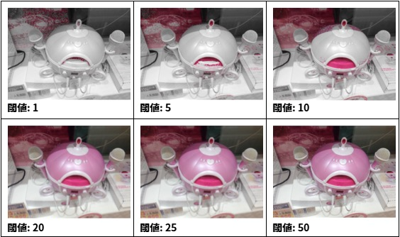 - 「色相の閾値」を調整する。
