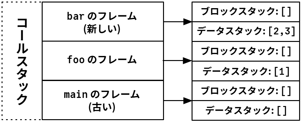 このとき、コンパイラによって次のデータ構造が生成されたとしよう: