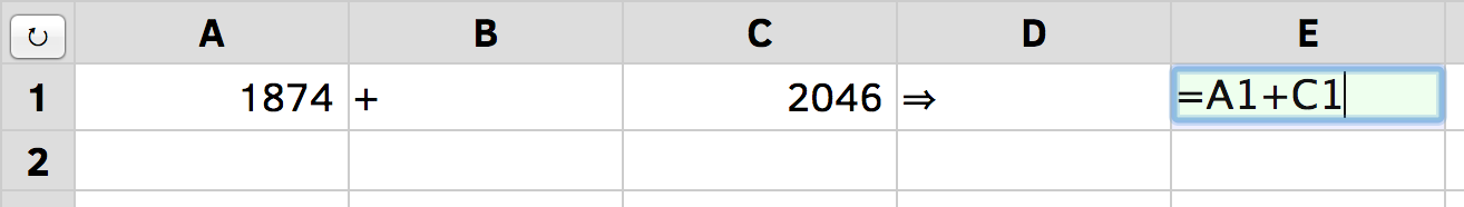 A1の1874やC1の2046など。右寄せで表示される。 - 数式: