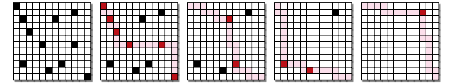 図 11.12印の付いたマスを貪欲に単調路で被覆する-