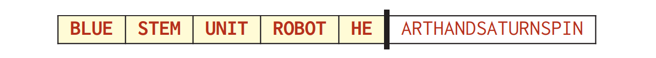 これまでの決断の列 ――最初の 17 文字の 4 つの単語への分割―― とこれから処理する文字列が、黒いバーによって分かれています。