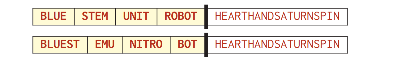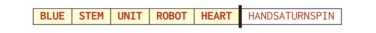 - それから次の単語として \(\color{maroon}{\texttt{HEART}}\) を暫定的に受け入れ、後は決断は再帰の妖精に任せる。