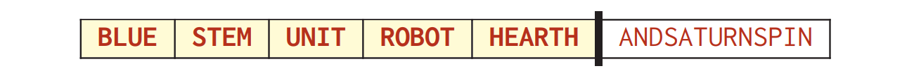 - それから次の単語として \(\color{maroon}{\texttt{HEARTH}}\) を暫定的に受け入れ、後は決断は再帰の妖精に任せる。