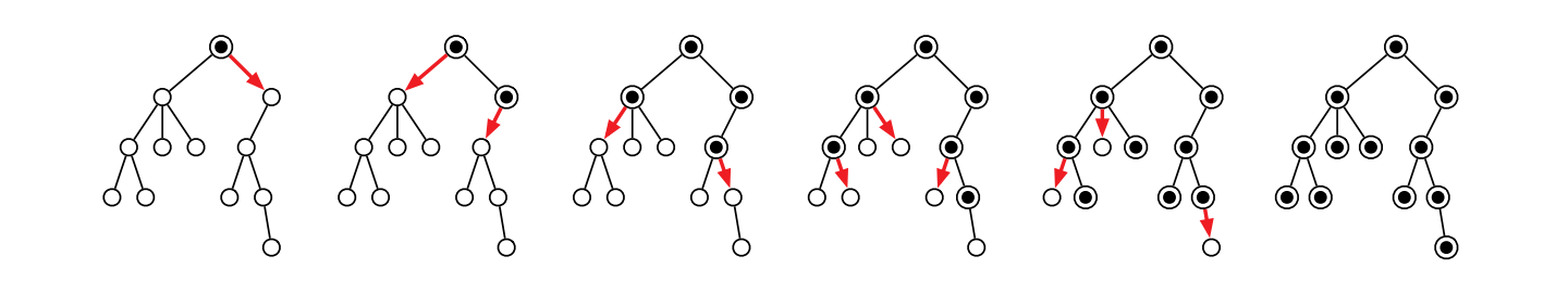 図 3.105 ラウンドでメッセージが木の全ての頂点に行き渡る様子-