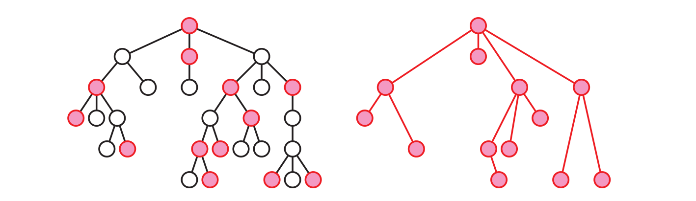 この問題では与えられた二つの木に対する共通根付き部分木を求める問題を考えます。根付き木とは根と呼ばれる頂点を持つ連結非巡回グラフであることを思い出してください。根付き部分木とは、ある頂点とその全ての子孫からなる根付き木のことです。 "共通" の意味はどのような根付き木の組を同型 (isomorphic) とみなすかによって異なります。