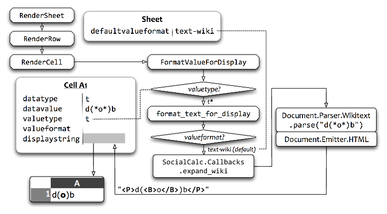 動作をレスポンシブにするために、SocialCalc はセルの値の再計算と DOM の更新をバックグラウンドで行います。このためユーザーが複数のセルを立て続けに変更したとしても、エンジンがコマンドキューを使って変更を順番通りに処理します。