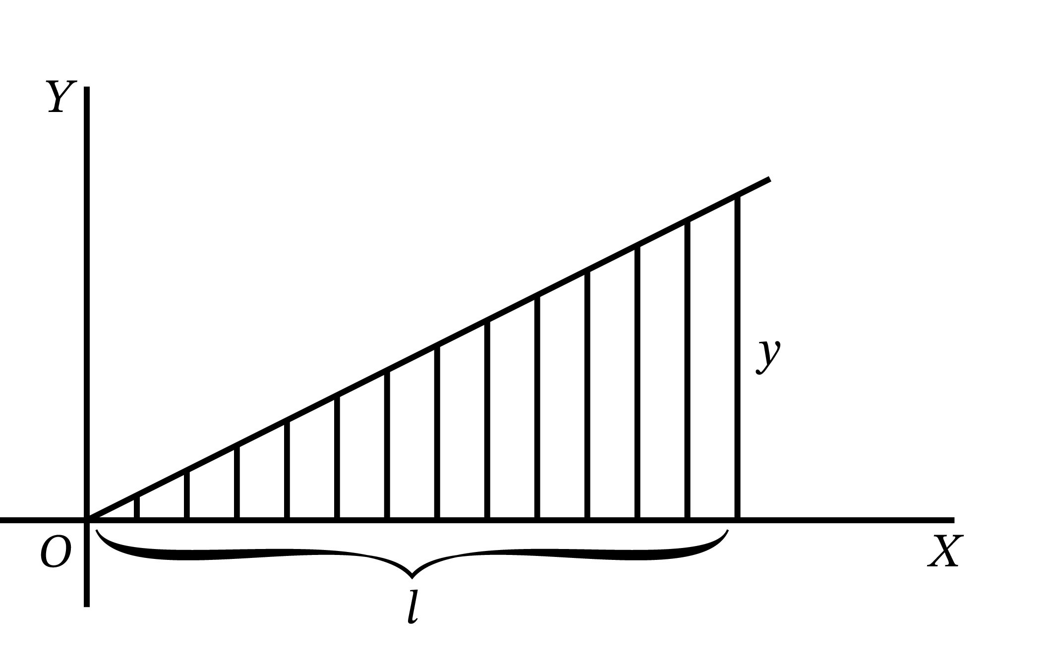 一般的な曲線の \(x = 0\) から \(x = x_{1}\) の部分の \(y\) 座標の平均値は \[ y\ {\footnotesize \text{の平均値}} = \frac{1}{x_1} \int^{x=x_1}_{x=0} y \cdot dx \] と表せる。