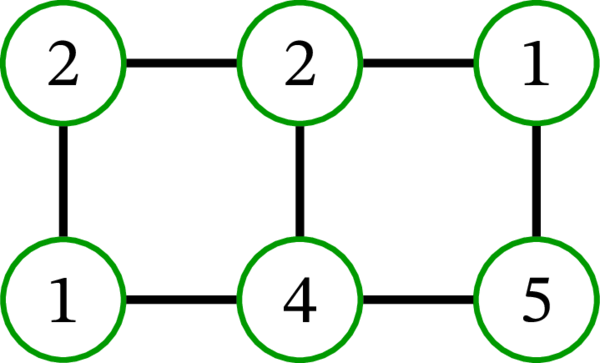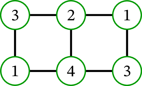 これは真面目な数学の講義なので、色は正整数で表される。頂点に色を塗るとは、各頂点に正整数を割り当てることに等しい: