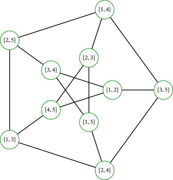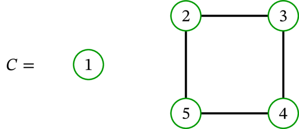 グラフ \(A\) は適切な \(3\)-彩色を持つ。例えば、頂点 \(1,2,3,4,5\) をそれぞれ \(1,2,1,2,3\) に移す写像 \(f\) は適切な \(3\)-彩色となる。