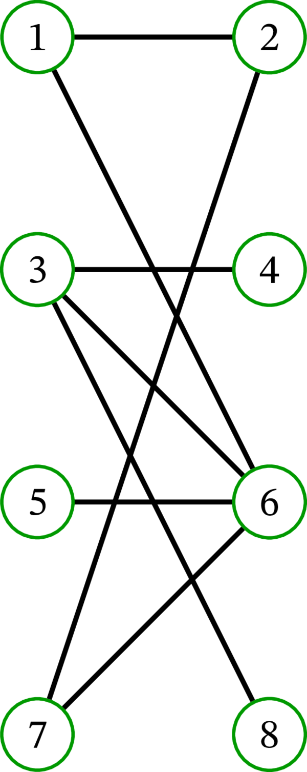 なぜなら、三つの左頂点 \(1\), \(5\), \(7\) のパートナーとなれる右頂点が \(2\) と \(6\) の二つしかないためである。