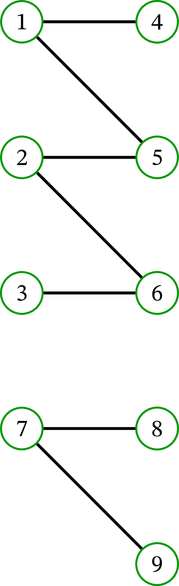 \[ \begin{aligned} \left\vert Y\right\vert & =\underbrace{\left\vert Y\setminus S\right\vert }_{\geq\left\vert N\left( X\cap S\right) \right\vert }+\left\vert Y\cap S\right\vert \\ & \geq\left\vert N\left( X\cap S\right) \right\vert +\underbrace{\left\vert Y\cap S\right\vert }_{\substack{=\left\vert S\right\vert -\left\vert X\cap S\right\vert \\[3pt](\because\ \left\vert S\right\vert =\left\vert X\cap S\right\vert +\left\vert Y\cap S\right\vert )}}\nonumber\\ & =\left\vert N\left( X\cap S\right) \right\vert +\left\vert S\right\vert -\left\vert X\cap S\right\vert \qquad (1) \end{aligned} \]路被覆 \(\mathcal{P}\) に属する長さが \(1\) の路に対応する \(G\) の辺全体からなる集合を \(M\) とする。先述したように \(M\) は \(G\) のマッチングである (\(M\) に属する任意の二つの路は共通の頂点を持たないため)。\(M\) でマッチ済みでない頂点は、\(\mathcal{P}\) で任意の長さ \(1\) の路に属さない頂点に等しい。言い換えれば、それらは \(\mathcal{P}\) を構成する長さ \(0\) の路に属する (\(\mathcal{P}\) は \(D\) の路被覆であり、\(D\) の任意の路は長さが \(1\) 以下であるため)。\(M\) でマッチ済みでない \(X\) に属する頂点の個数を \(p\) として、\(M\) でマッチ済みでない \(Y\) に属する頂点の個数を \(q\) とする。