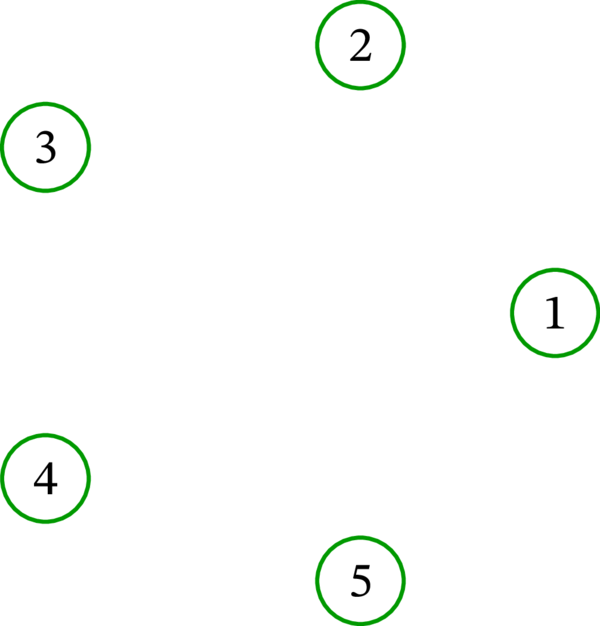 集合 \(\left\{ 1,2,3,4,5\right\} \) 上の完全グラフと空グラフを次の図に示す: