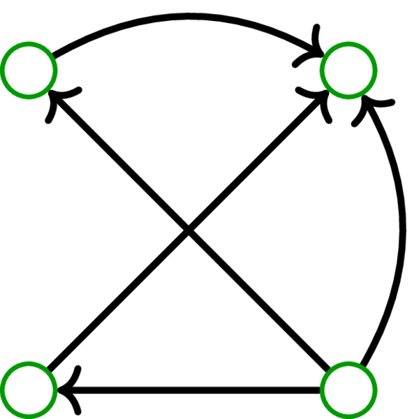 閉路を持たない強連結な有向グラフを木と定義できそうに思える。しかし残念ながら、そういった有向グラフに関して議論できることは少ない: この条件を満たす任意の有向グラフは \(1\) 個の頂点と \(0\) 個の弧からなる (その理由を納得しておくこと!)。