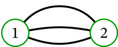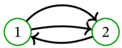 \(1\) から \(2\) への弧を反転させると次の多重有向グラフが得られる: