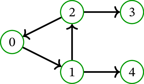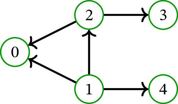 次の多重有向グラフは \(0\), \(1\), \(2\) という三つの始根を持つ: