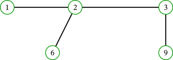 考えている多重グラフが木のとき距離の定義は単純になることを指摘しておく。木 \(T\) において二頂点 \(u\), \(v\) 間の距離 \(d\left( u,v\right) \) は \(T\) における \(u\) から \(v\) への唯一の路の長さに等しい。つまり、木では路が最短かどうかを考慮する必要がない。