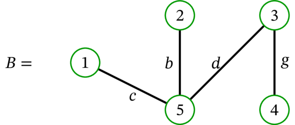 \(\left\vert E\right\vert =\left\vert V\right\vert -1\) が成り立つ (定理 5.2.4 の T1 \(\Longrightarrow\) T4 より)。
