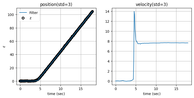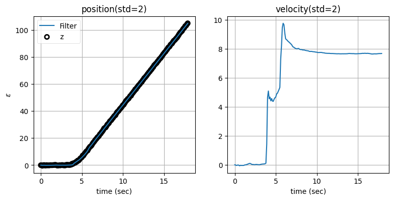 cvfilter = KalmanFilter(dim_x = 2, dim_z=1)