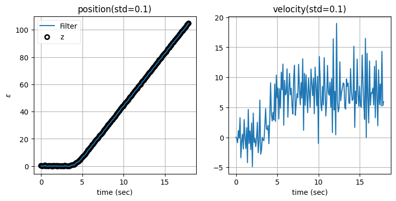 cvfilter.Q = Q_discrete_white_noise(dim=2, dt=dt, var=0.02)
