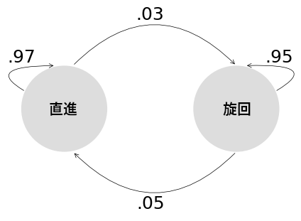 最後に、IMM の出力として推定値を計算する処理が必要になる。どうすればよいだろうか? 混合推定値の重み付け平均を求めるだけで済む: