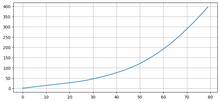 x, y = solve(x=0, y=1, vel=v, v_wind=0, launch_angle=theta)