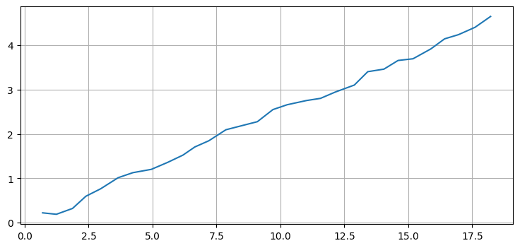 というわけで、最初は非常に簡単なシミュレーションから始めよう。次の PosSensor クラスは直進する物体に取り付けられたセンサーをシミュレートする。初期位置、速度、そしてノイズの標準偏差で初期化され、read メソッドが位置をタイムステップ一つ分だけ更新して新しい観測値を返す: