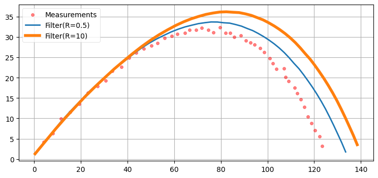 ['Measurements', 'Filter(R=0.5)', 'Filter(R=10)'],