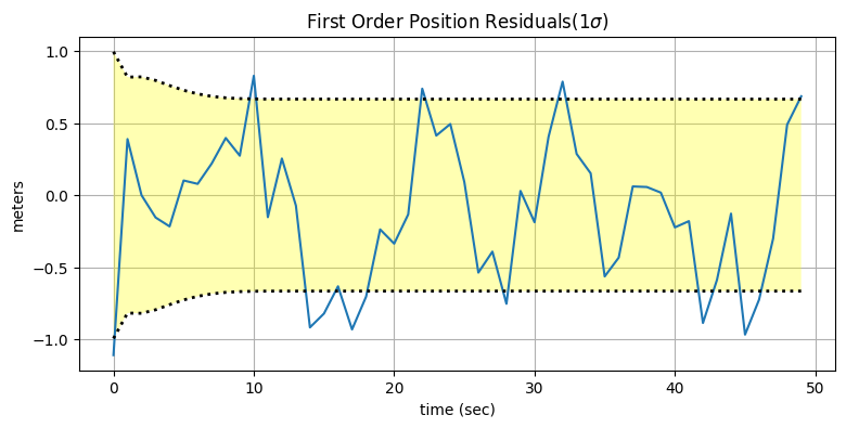 観測関数の設計は簡単であり、途中の次元解析も行わずに直接求ることもできただろう。ただカルマンフィルタの式は全ての行列の次元を特定することは覚えておいたほうがいい。何を設計すればいいのか分からなくなったときは、行列の次元に注目すると見通しが良くなることが多い。
