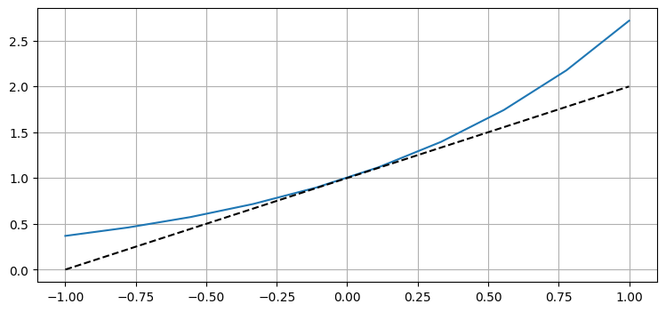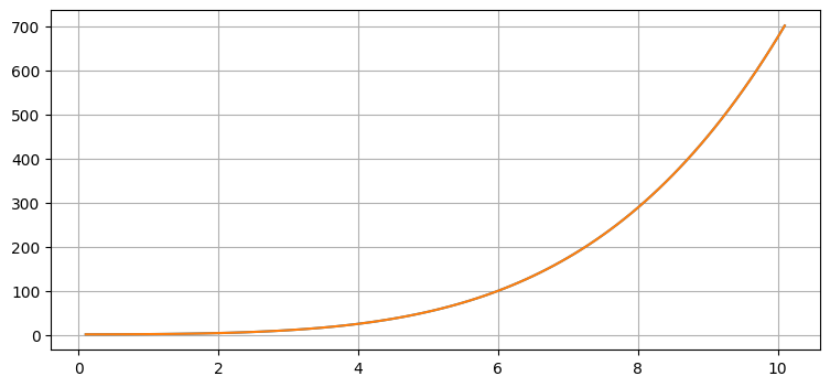 exact = [(t**2 + 4)**2 / 16. for t in ts]