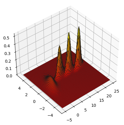今考えている問題では犬の位置と速度の両方を考慮するので、多変量のガウス分布を使わなければならない。つまり状態変数として状態ベクトル \(\mathbf x\) を考え、対応する共分散行列 \(\mathbf P\) を考える必要がある。