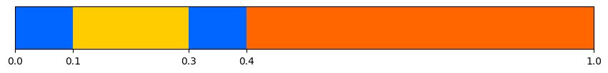 plot_stratified_resample([.1, .2, .3, .4, .2, .3, .1])