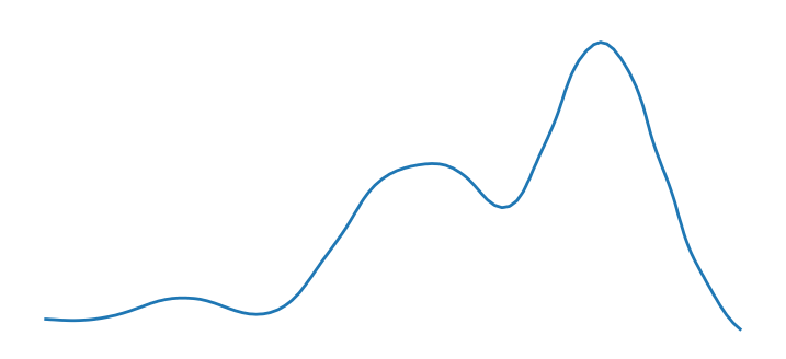 この積分はガウス分布に対してなら簡単に計算できる。しかし現実世界はそれほど簡単ではない。例えば確率分布は次に示すような確率密度関数を持っているかもしれない。任意の曲線を考える場合、積分の計算はおろか、解析的に表す方法が存在しない可能性もある: