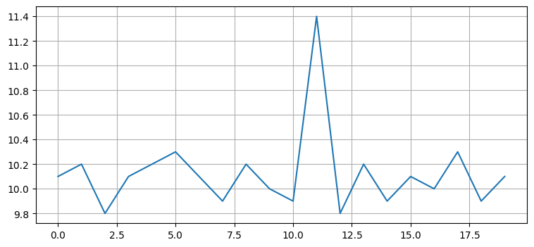 data3 = [9.8, 10.2, 9.9, 10.1, 10.0, 10.3, 9.9, 10.1]