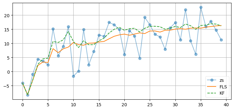 fls = FixedLagSmoother(dim_x=2, dim_z=1, N=8)