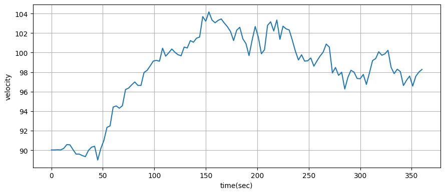 難しい話はこれぐらいにして、一次元の追跡問題に対する状態遷移関数と観測関数の実装を次に示す。状態は \(\mathbf x = \Big[x \, \, \dot x\Big]^ \mathsf T\) としている: