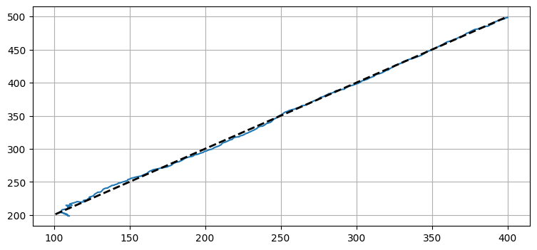 plt.plot(track[:, 0], track[:,1], color='k', lw=2)