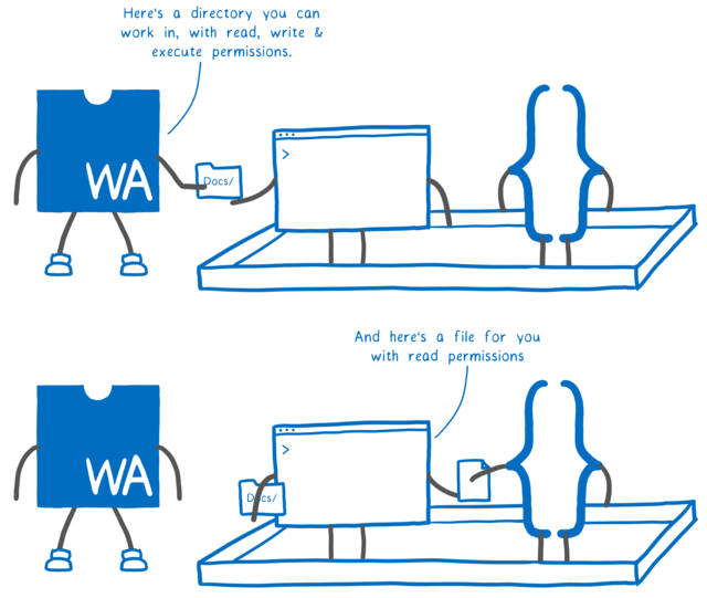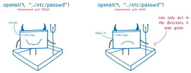 WASI にはセキュリティをさらに堅牢にする仕組みがあり、capability-based security の一種が使われています。