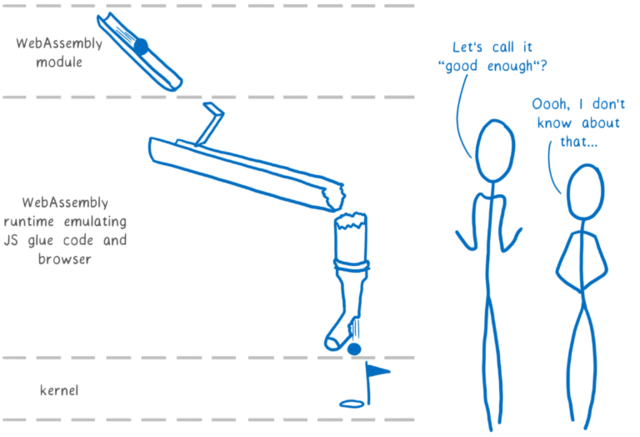 数十年に渡って動作する WebAssembly のエコシステムを作っているのですから、その基盤は盤石なものでなくてはなりません。デファクトスタンダードがエミュレーションのエミュレーションというのはあり得ません。