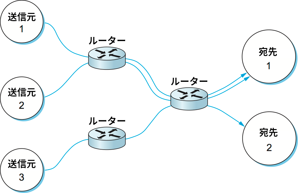 先に進む前に言葉の定義をはっきりさせておく。本書でリソース割り当て (resource allocation) とは、ネットワークを利用するそれぞれのアプリケーションがネットワークリソースに対して抱えている互いに競争し合う要望 (多くはリンク帯域やルーターとスイッチにおけるバッファ空間に関するもの) に応えるためにネットワークの構成要素が行う一連の処理を言う。もちろん、全ての要望に応えるのが不可能な場合もしばしばある。この場合、一部のアプリケーションは要求より少ないネットワークリソースしか受け取ることができない。いつ誰に No と言うかを判断することもリソース割り当て問題の一要素となる。