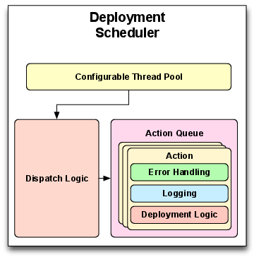 デプロイ操作の実行はスレッドプールによってスケジュールされる。このスレッドプールはアプリケーションの要件に応じて単一スレッドまたは複数スレッド、もしくはユーザーが選択した振る舞いで動作する。コンポーネントインスタンスのインストール順序をプランに記されたメタデータに基づいて動的に入れ替える優先度ベースのスケジュールアルゴリズムを使うこともできる。