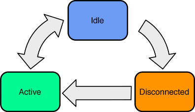デバイスはネットワークに接続されるものの、アプリケーションデータの送受信はできない。ただし、応答に Active 状態が必要となるネットワークリクエストの受信はできる。一定の時間 (たいていは一分程度) にわたってネットワークが使用されないと、デバイスは Disconnected 状態に遷移する。
