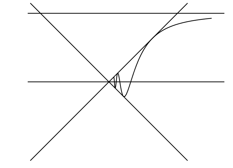 [前問の曲線が \(y = -1\) と \(y = 1\) の間にあったのと同様に、この曲線は \(y = -x\) と \(y = x\) の間にある (図 14)]