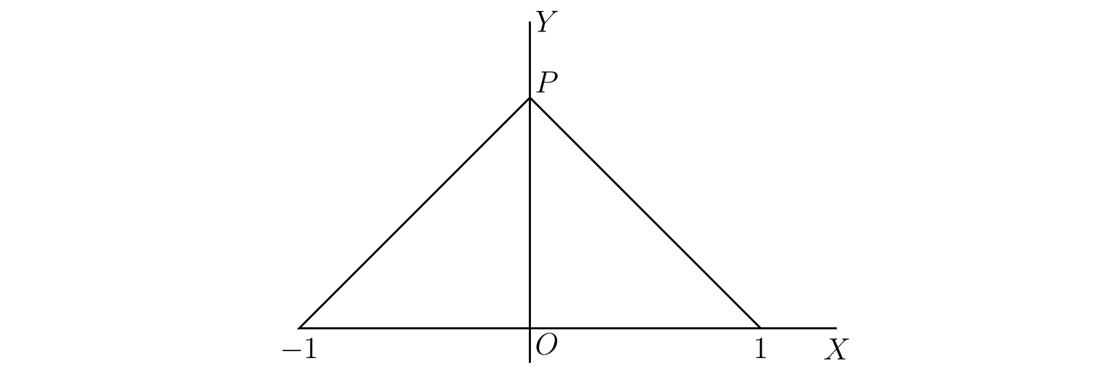 ここまでは (前節を除いて) 考えている区間に含まれる全ての \(x\) で \(\phi(x)\) が導関数を持つ状況を考えてきた。この条件が満たされないなら定理は成り立たない。例えば次の関数は 定理 B の前提を満たすが結論は満たさない: \[ y = 1 - \sqrt{x^{2}} \] ただし平方根は正の値を取るとする。この関数のグラフを 図 40 に示す。この関数は \(\phi(-1) = \phi(1) = 0\) を満たすが、図からも明らかなように \(x\) が負なら \(\phi'(x)\) は \(-1\) で \(x\) が正なら \(\phi'(x)\) は \(1\) である。また \(\phi(x)\) は \(x = 0\) で微分係数を持たず、グラフの点 \(P\) では接線を引けない。つまり \(\phi(x)\) は明らかに \(x = 0\) で極大となるにもかかわらず、\(\phi'(0)\) は存在せず、\(0\) と等しくない。つまり定理 B を使った極大性の判定が失敗する。