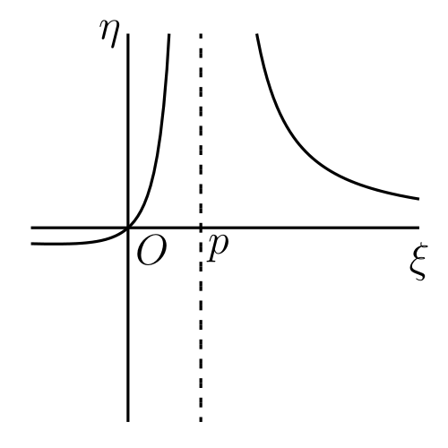 \(p = q\) なら \[ \eta = \frac{\xi}{(\xi - p)^{2}} \] であり、図 41c のようなグラフが得られる。