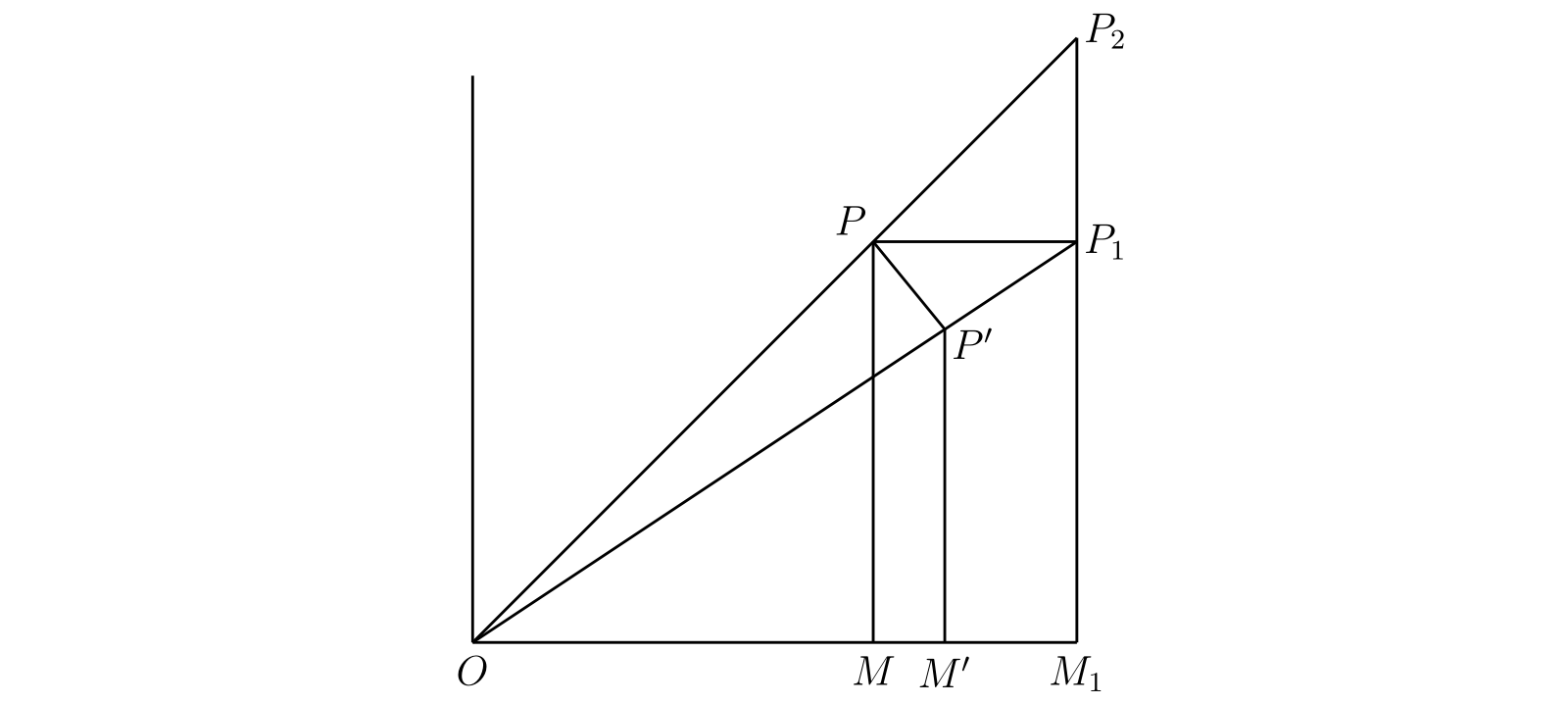 もちろん \(\Delta x = \delta x\) が成り立つのはそうなるように \(\Delta r = PP_{2}\) を選んだからに過ぎない。他のどんな値を選んだとしても、\(\Delta x\) と \(\Delta r\) はここで使ったものに比例する値となる。[return]