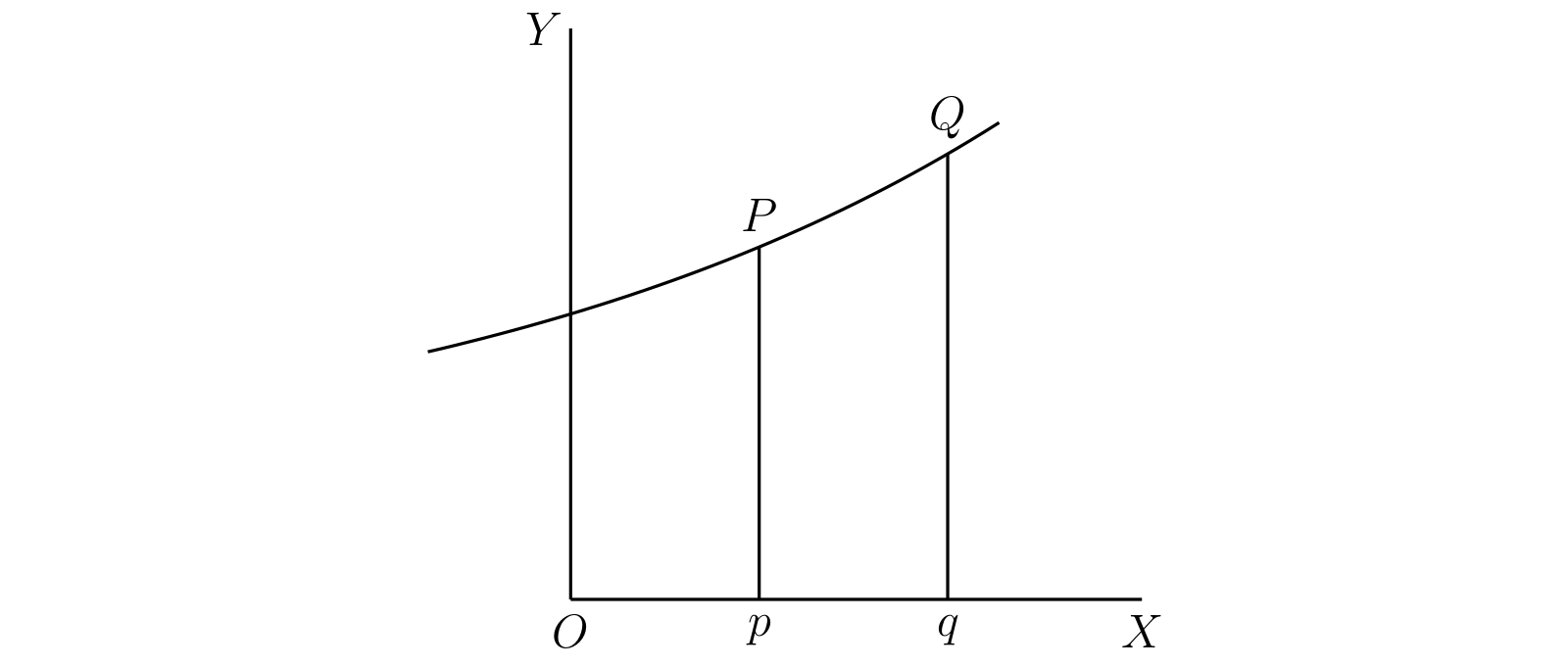 そのような性質の中に以降で使うことになるものが一つある。その性質は次の不等式で表される13: \[ \left|\int_{a}^{b} f(x)\, dx\right| \leq \int_{a}^{b} |f(x)|\, dx \qquad \text{(1)} \] この不等式は §156–§157 の定義から容易に示せる。\(\delta_{\nu}\) が §156 と同じ意味を持ち、\(\delta_{\nu}\) の適当な点における \(\phi\) と \(\psi\) の値を \(\phi_{\nu}\) と \(\psi_{\nu}\) とする。さらに \(f_{\nu} = \phi_{\nu} + i\psi_{\nu}\) とすれば \[ \begin{aligned} \int_{a}^{b} f\, dx & = \int_{a}^{b} \phi\, dx + i \int_{a}^{b} \psi\, dx \\ & = \lim \sum \phi_{\nu}\, \delta_{\nu} + i \lim \sum \psi_{\nu}\, \delta_{\nu} \\ & = \lim \sum (\phi_{\nu} + i\psi_{\nu})\, \delta_{\nu} = \lim \sum f_{\nu}\, \delta_{\nu} \end{aligned} \] であり、ここから \[ \left|\int_{a}^{b} f\, dx\right| = \left|\lim \sum f_{\nu}\, \delta_{\nu}\right| = \lim \left|\sum f_{\nu}\, \delta_{\nu}\right| \] が分かる。さらに \[ \int_{a}^{b} |f|\, dx = \lim \sum |f_{\nu}|\, \delta_{\nu} \] だから、求めたい不等式は \[ \left|\sum f_{\nu}\, \delta_{\nu}\right| \leq \sum |f_{\nu}|\, \delta_{\nu} \] から容易に示せる。