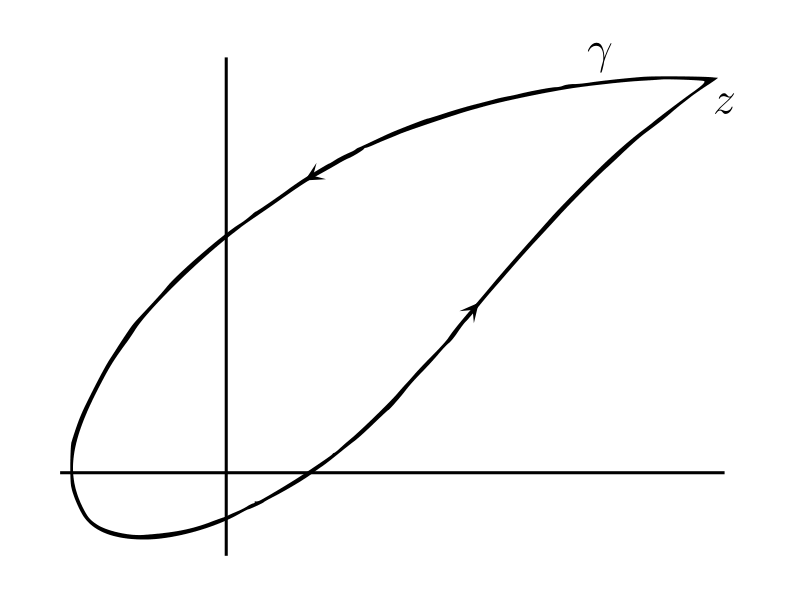 これから \(\bm{Z}\) が最初の点に戻ってきたときに \(\bm{Z}\) の偏角が変わっているなら、\(\bm{\gamma}\) 上または \(\bm{\gamma}\) の内部の点で \(\bm{Z = 0}\) となることを示す。