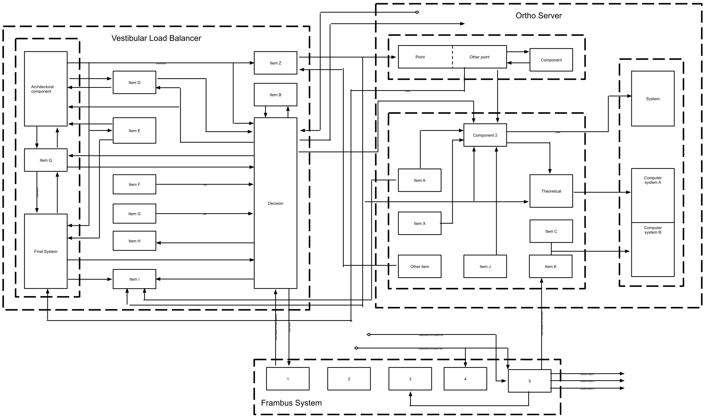 情報が視覚的に積み上がった分かりにくい図から整頓された役に立つ図を切り出すコツは、複雑なシステムをサブシステムを使って整理することです。次の図にこの例を示します: